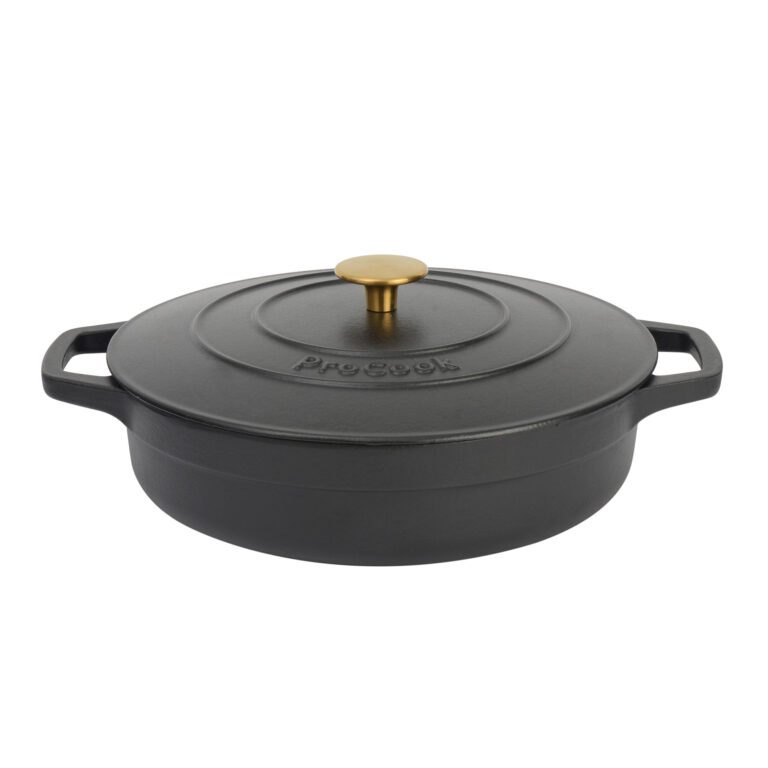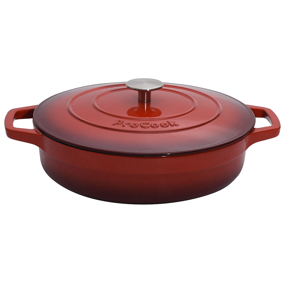 ProCook Bratentopf aus Gusseisen, 28 cm Ø, 3,9 l Volumen, niedrig ...