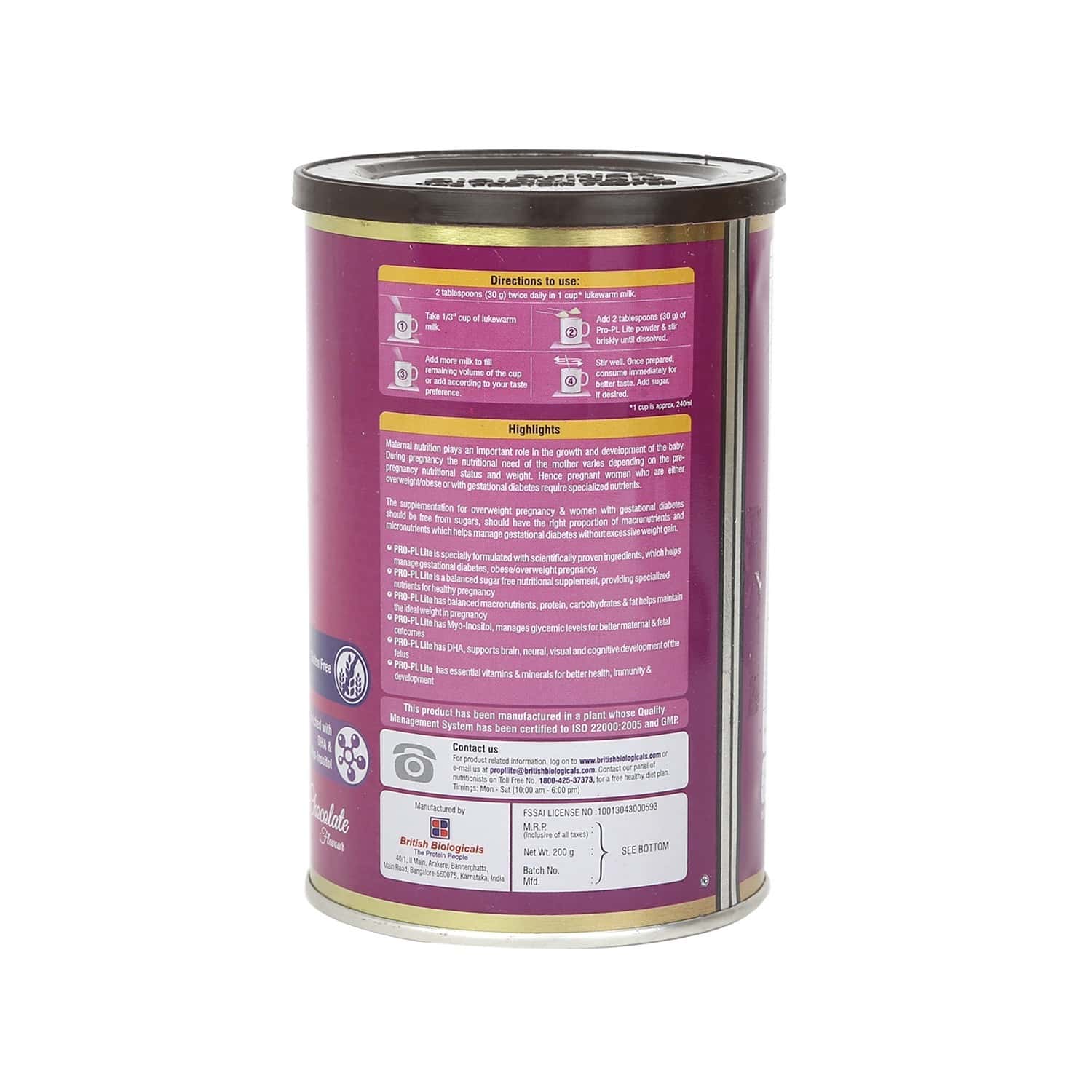 British Biologicals Pro-PL Lite Chocolate Flavour Powder 200 gm - Buy ...