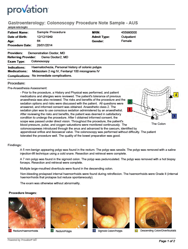 Colonoscopy Procedure Note Example - Provation Apex