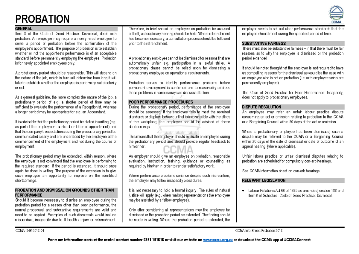 CCMA Probation Notes: Understanding Dismissal Procedures - Studocu