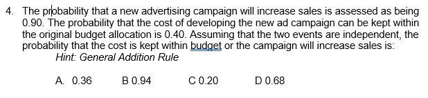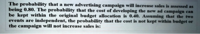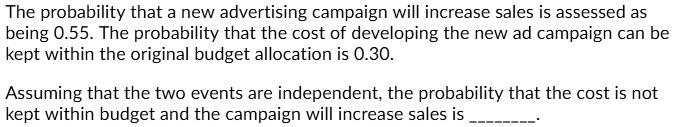 the probability that a new advertising campaign will increase sales is ...