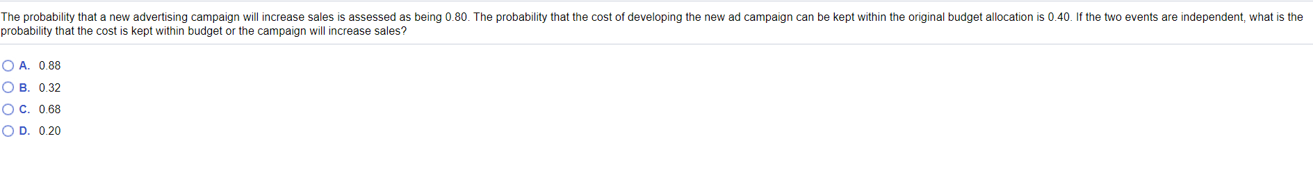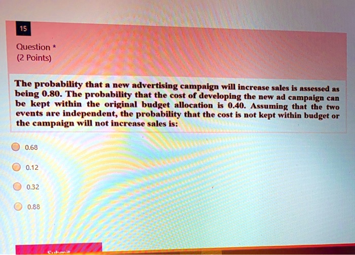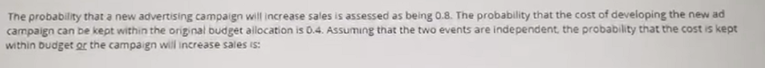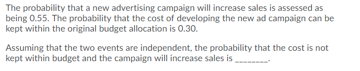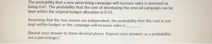 The probability that a new advertising campaign will increase sales is ...