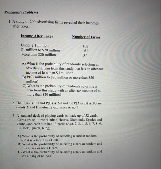 Solved Probability Problems 1. A study of 200 advertising | Chegg.com