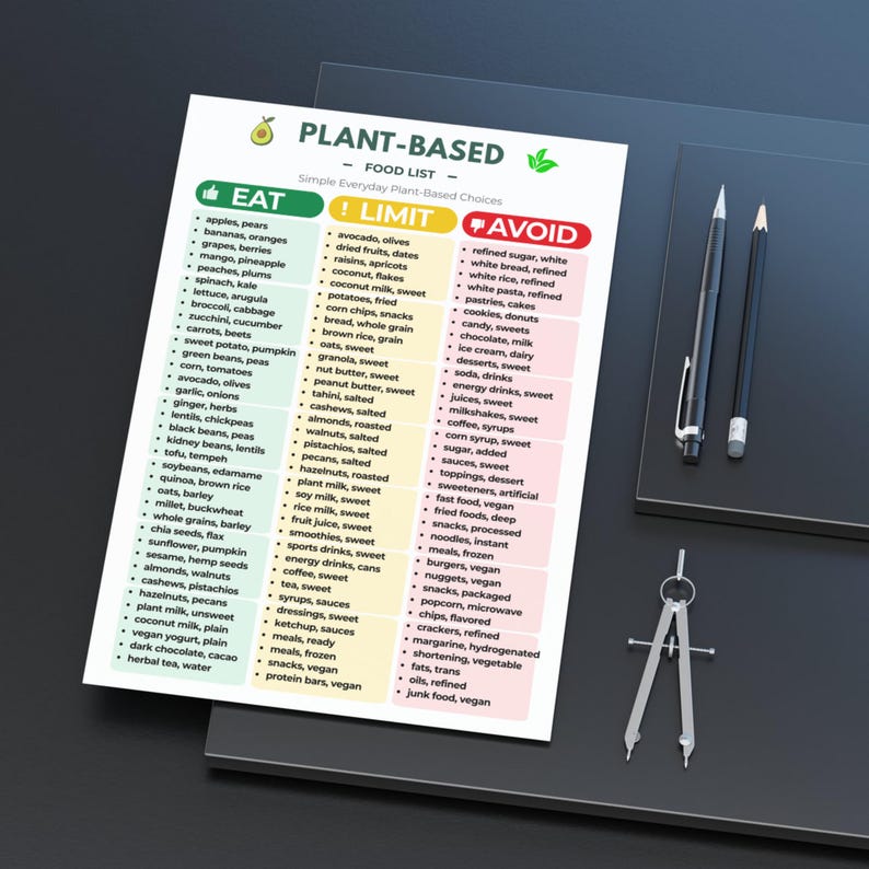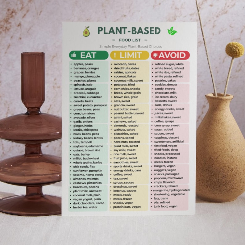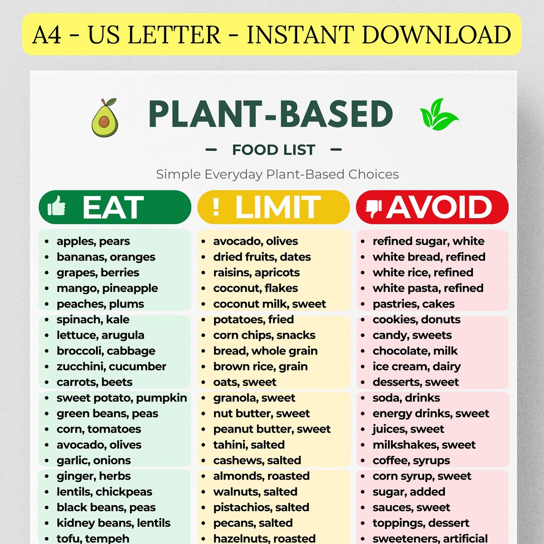 Plant Based Food List Printable, Eat Limit Avoid Guide (digital ...