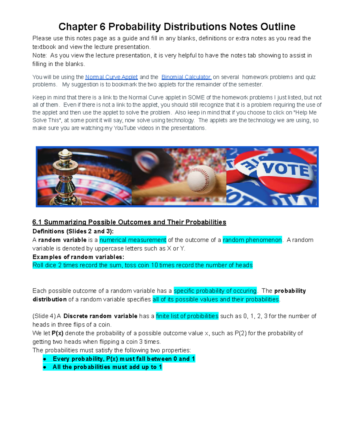Copy of Chapter 6 Notes Outline - Probability Distributions - STA 261 ...