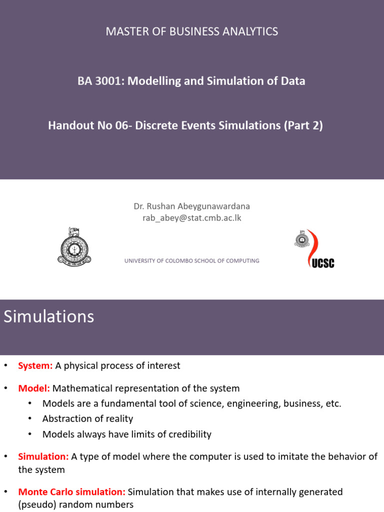 BA 3001 Week 06 Discrete Event Simulation Part 2 | PDF | Probability ...