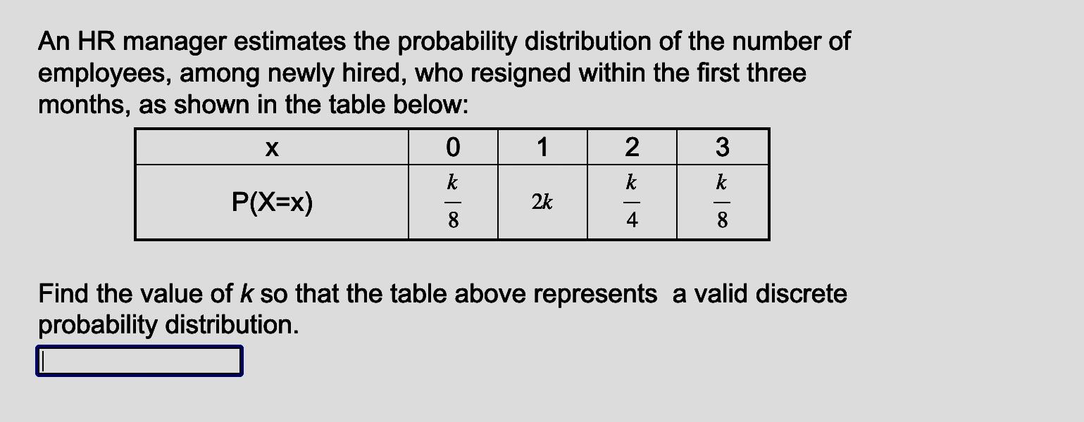 Solved An HR manager estimates the probability distribution | Chegg.com