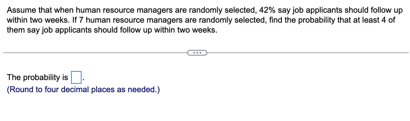 Assume that when human resource managers are randomly selected, 42% say ...