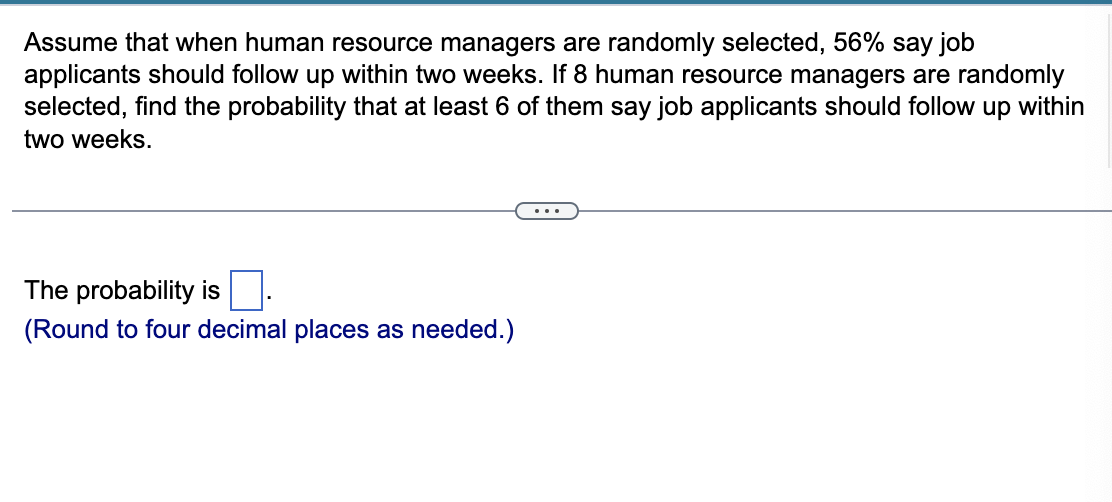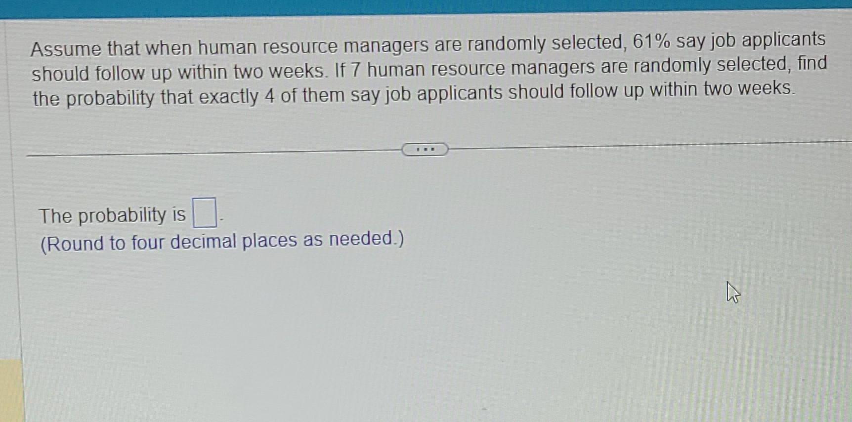 assume that when human resource managers are randomly selected 56 say ...