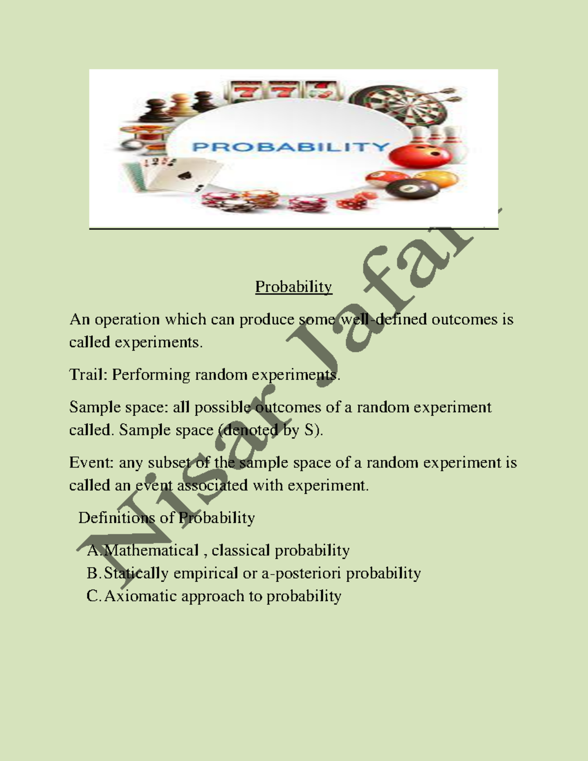 Probability pdf - Probability An operation which can produce some well ...