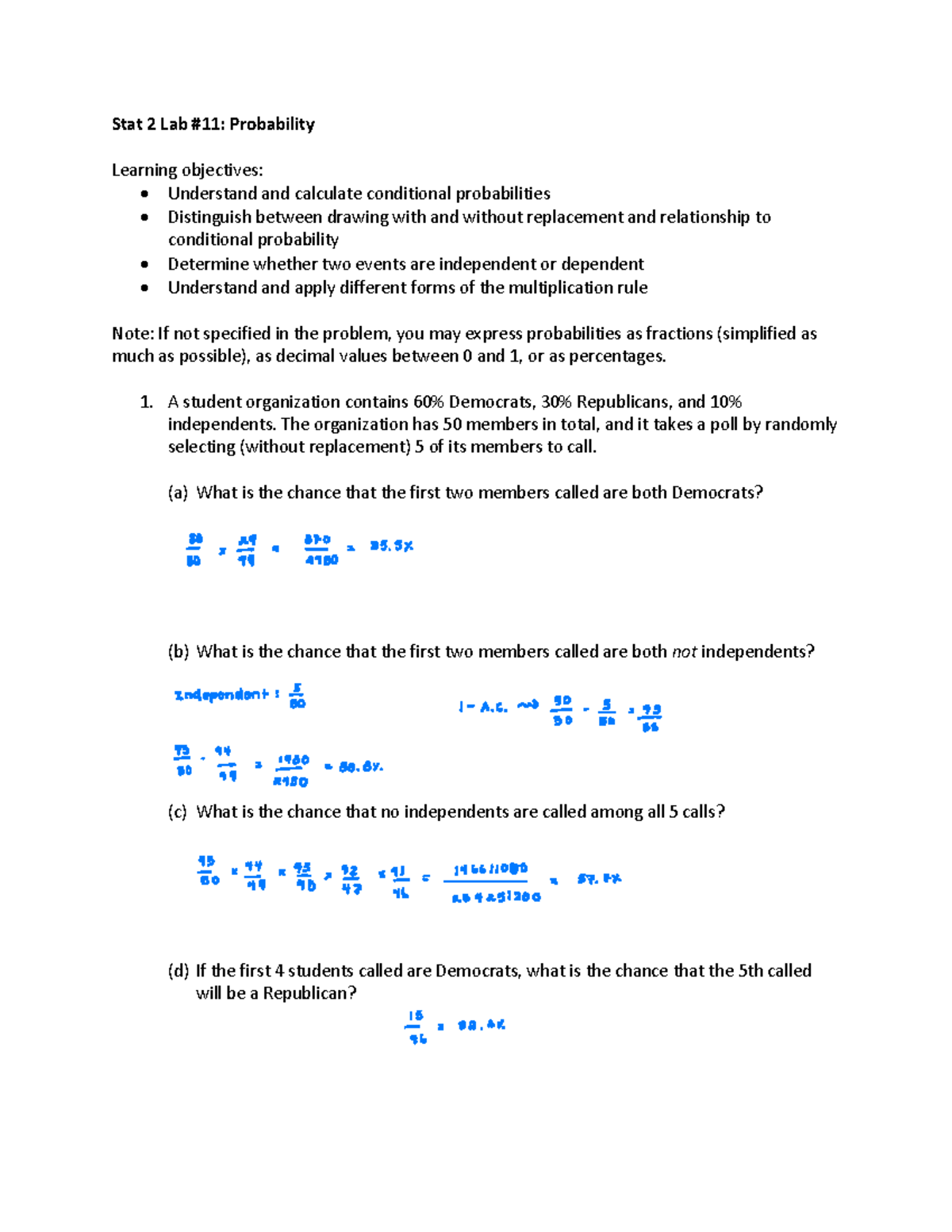 Stats 2 - Lab Probability: Conditional Probabilities & Rules - Studocu
