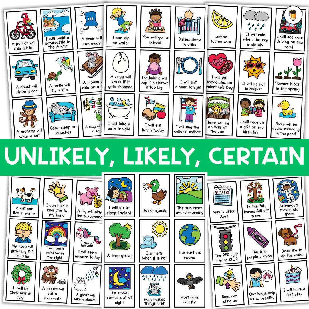 Probability Activities Worksheets & Posters - Likely Unlikely Certain ...