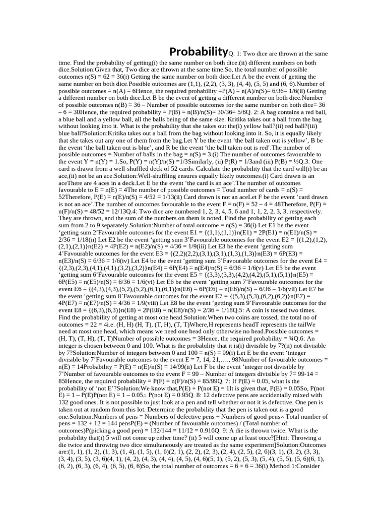 SOLUTION: Probability - definition, concept, examples - Studypool