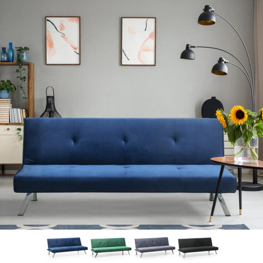 Divano letto 2 posti clic clac reclinabile design velluto tessuto ...