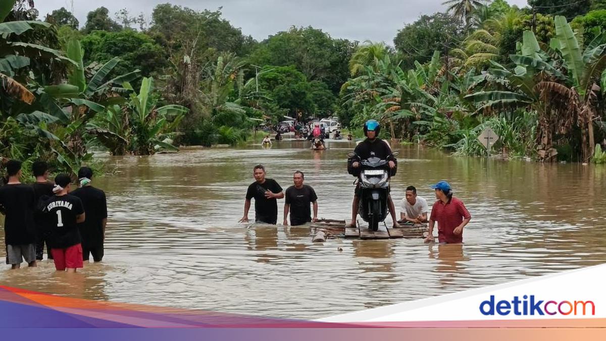 Jalan Indonesia-Malaysia di Beduai Lumpuh, Ketinggian Air Capai 1,5 Meter