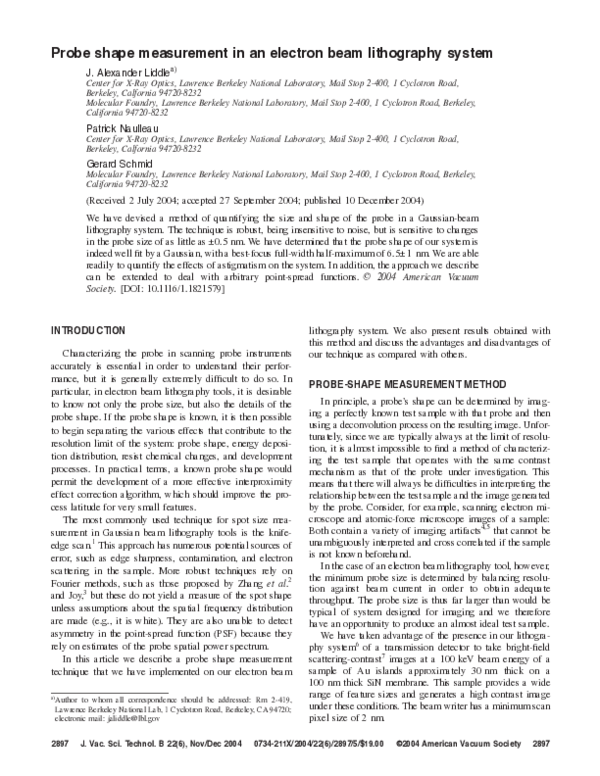 (PDF) Probe shape measurement in an electron beam lithography system