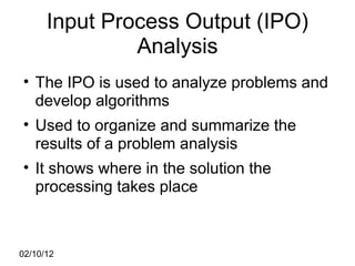 IPO Chart Basics Inputs Processes Outputs PPT Outline AT