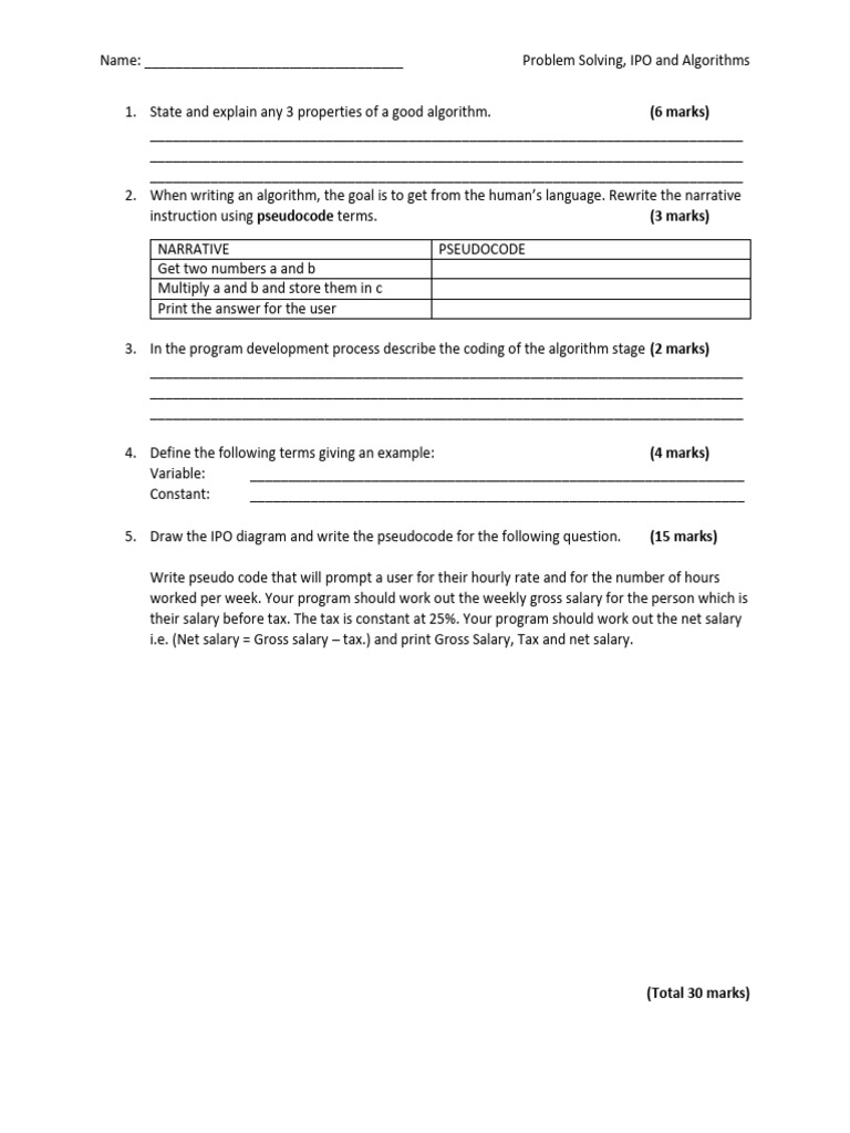 01 - Problem Solving, IPO and Algorithms Test | PDF