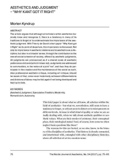 (PDF) Aesthetics and Judgment: “Why Kant Got It Right”