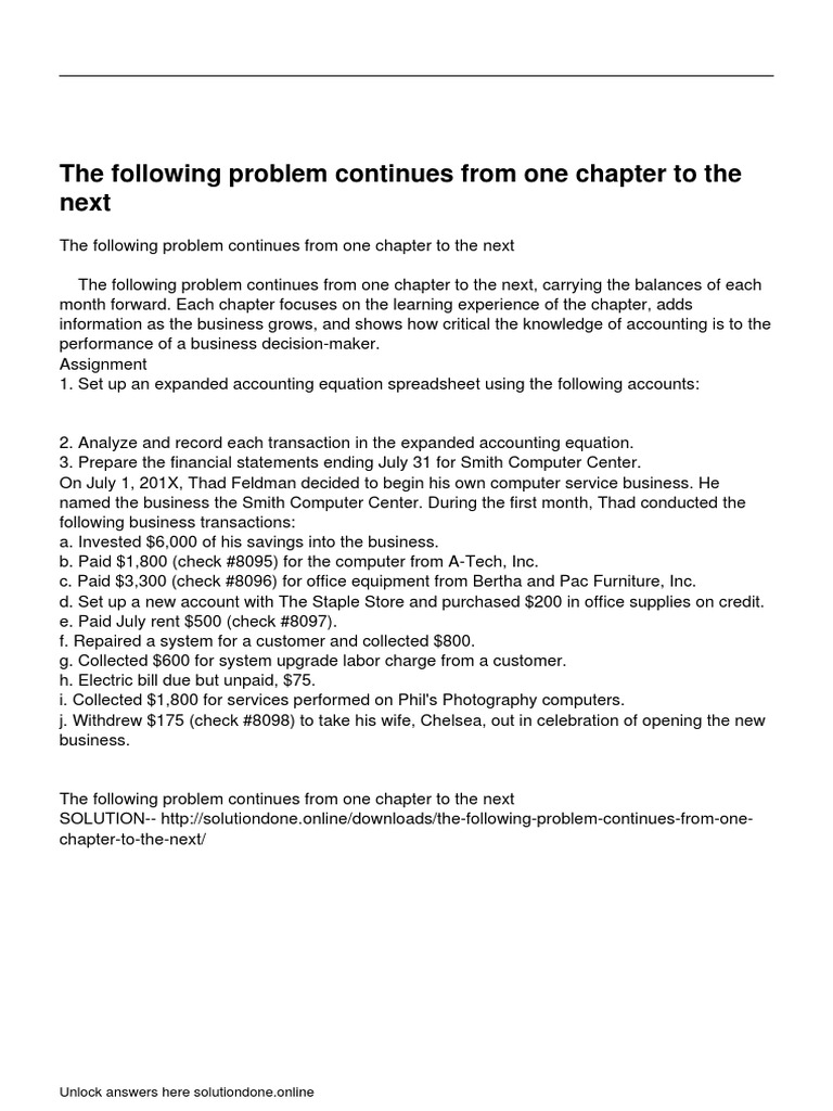 The Following Problem Continues From One Chapter To The Next | PDF