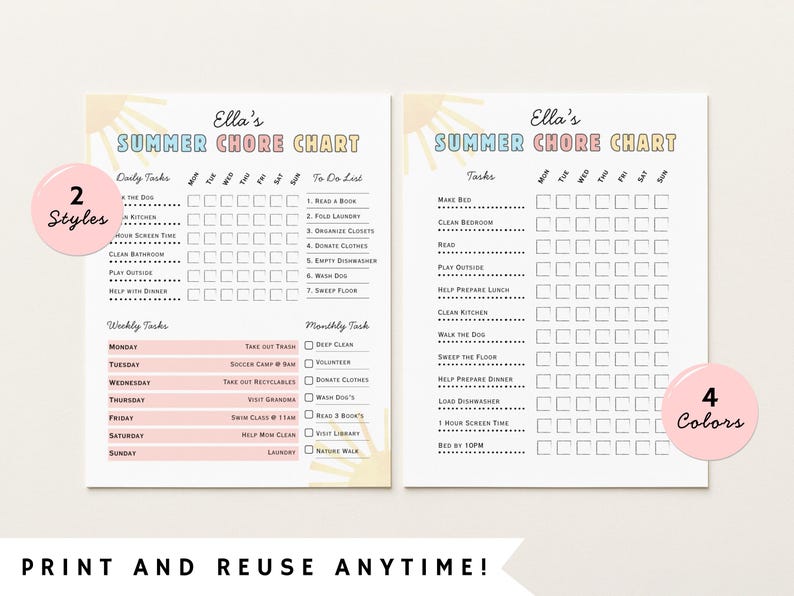 Editable Summer Chore Chart for Kids: Teen Chore Chart Printable Summer ...