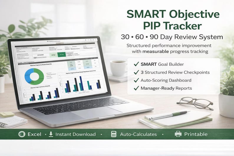 SMART PIP Tracker Excel | 30-60-90 Day Performance Improvement Plan ...