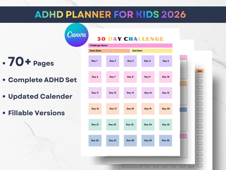 ADHD Kids Planner Canva Template, Chore Chart, Study Task List, Mood ...