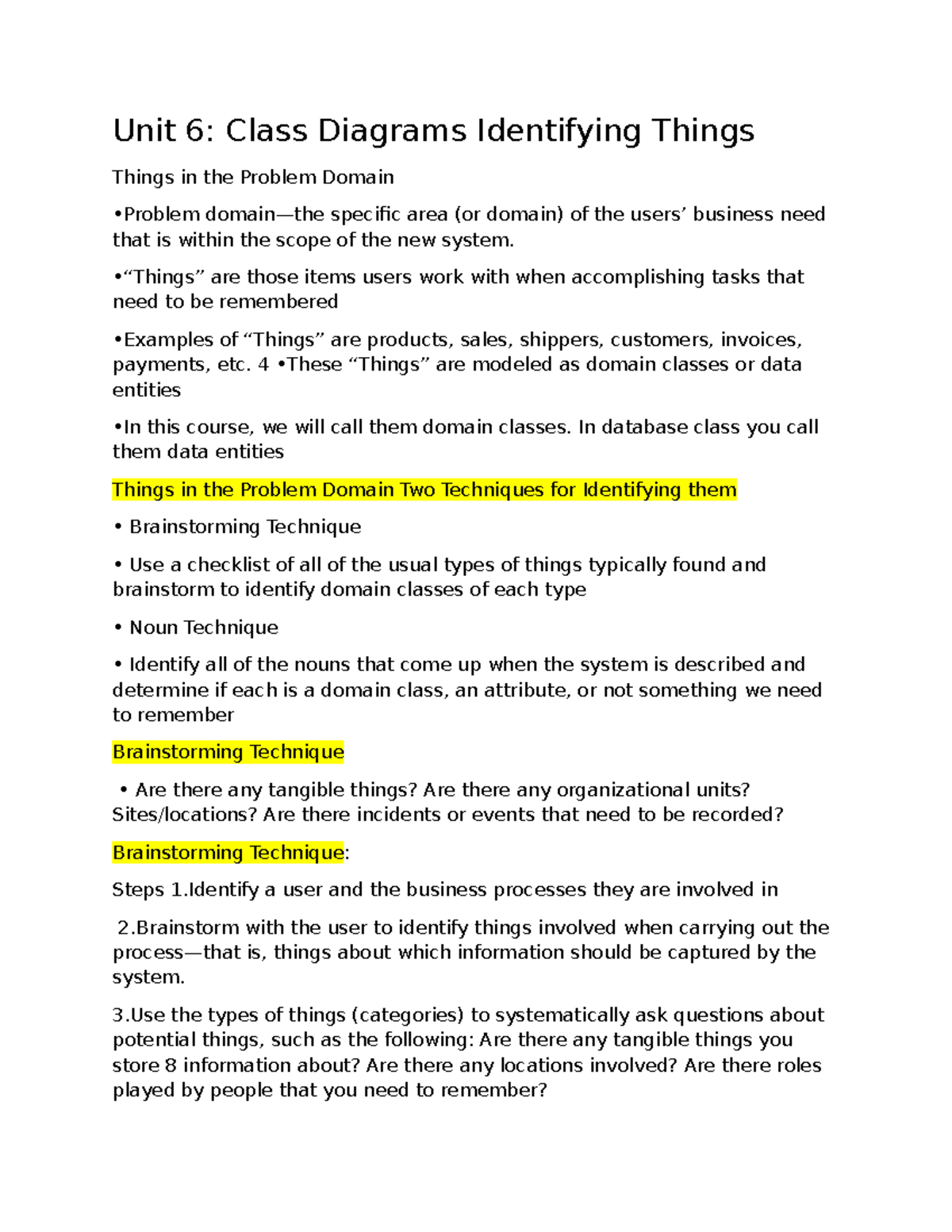 Unit 6: Class Diagrams & Problem Domain Techniques (IFS224 T2 Notes ...