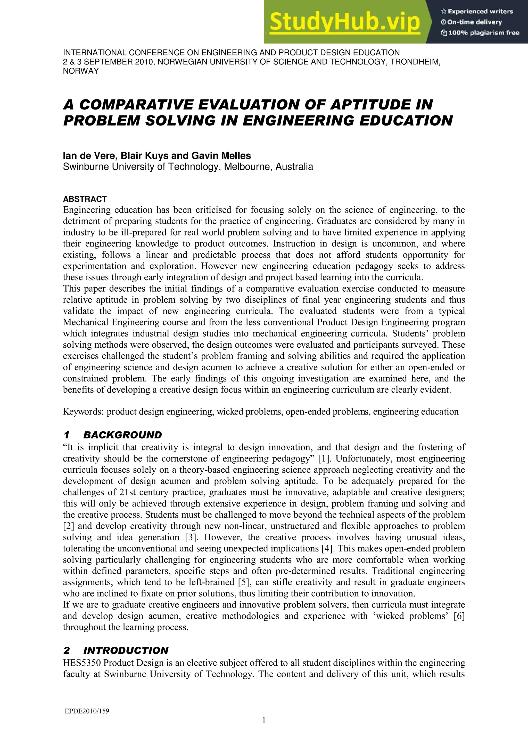 A Comparative Evaluation Of Problem Solving In Engineering Education | PDF