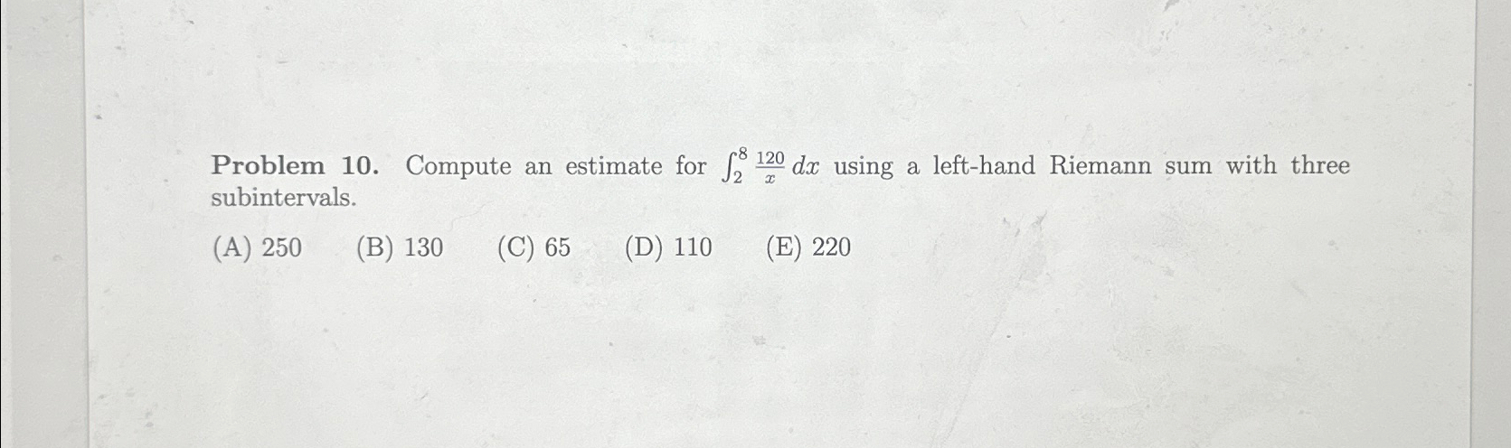 Solved Problem 10. Compute an estimate for ∫28120xdx using | Chegg.com