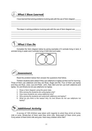 1. Solve problems involving sets with the use of Venn Diagram. Learning ...