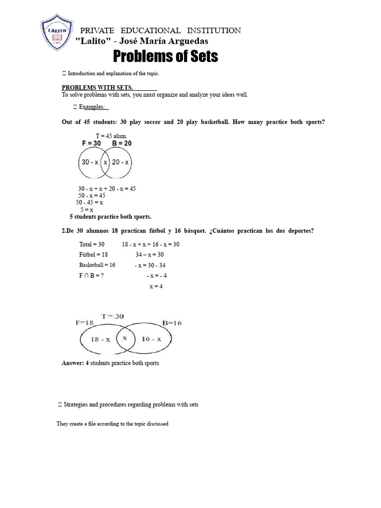 Solving Problems Involving Two Sets: A Detailed Lesson Plan on Using ...