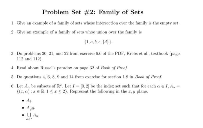 Solved Problem Set #2: Family of Sets 1. Give an example of | Chegg.com