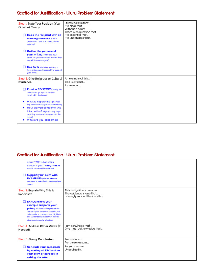 Scaffold For Justification - Uluru Problem Statement | PDF | Evidence