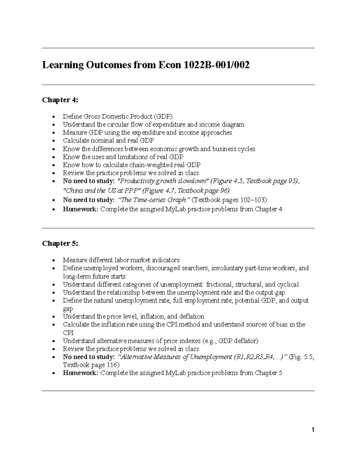 Learning Outcomes for Econ 1022B: Chapters 4-14 Overview - Studocu