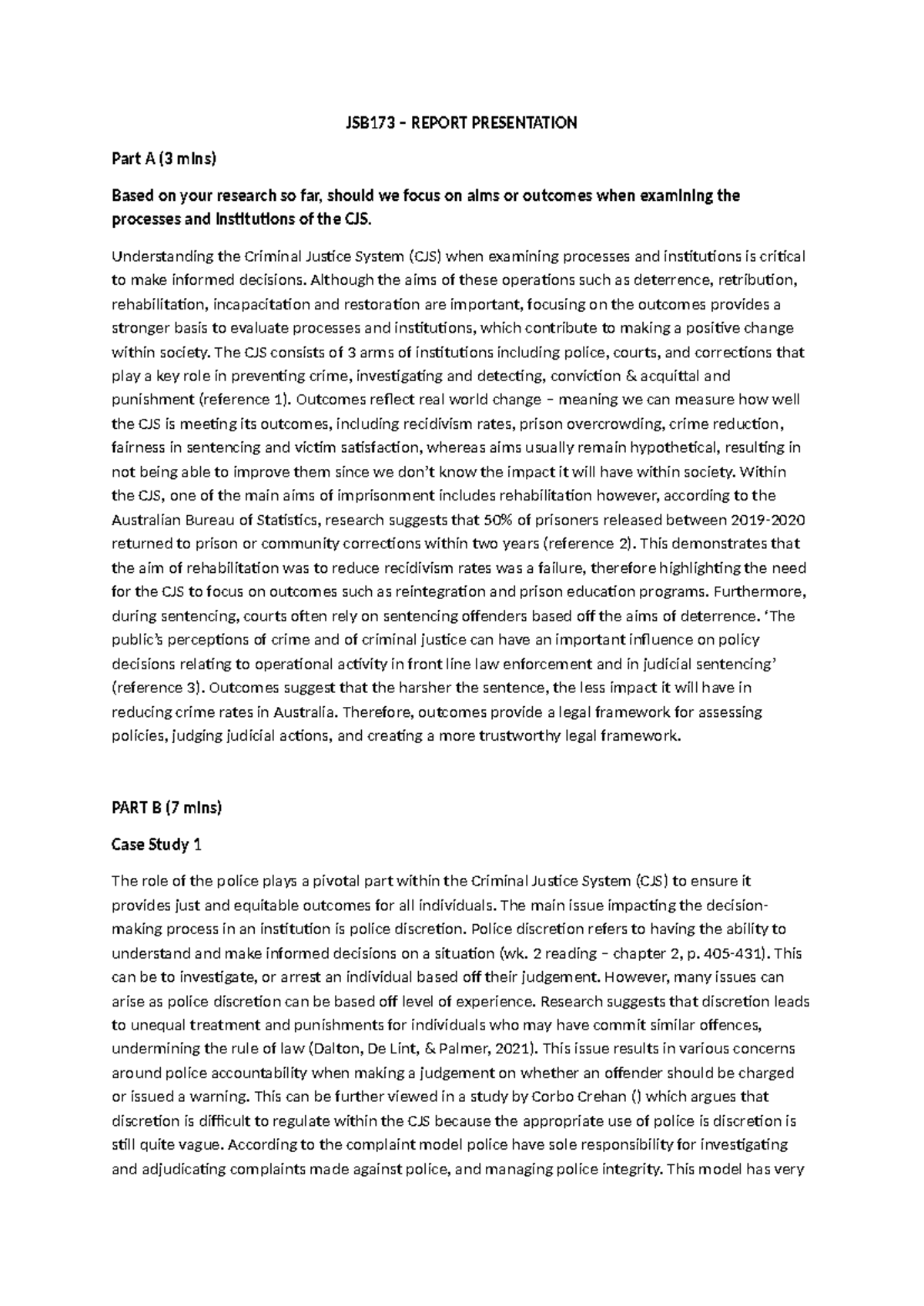 JSB173 Research Report: Aims vs. Outcomes in the CJS - Studocu