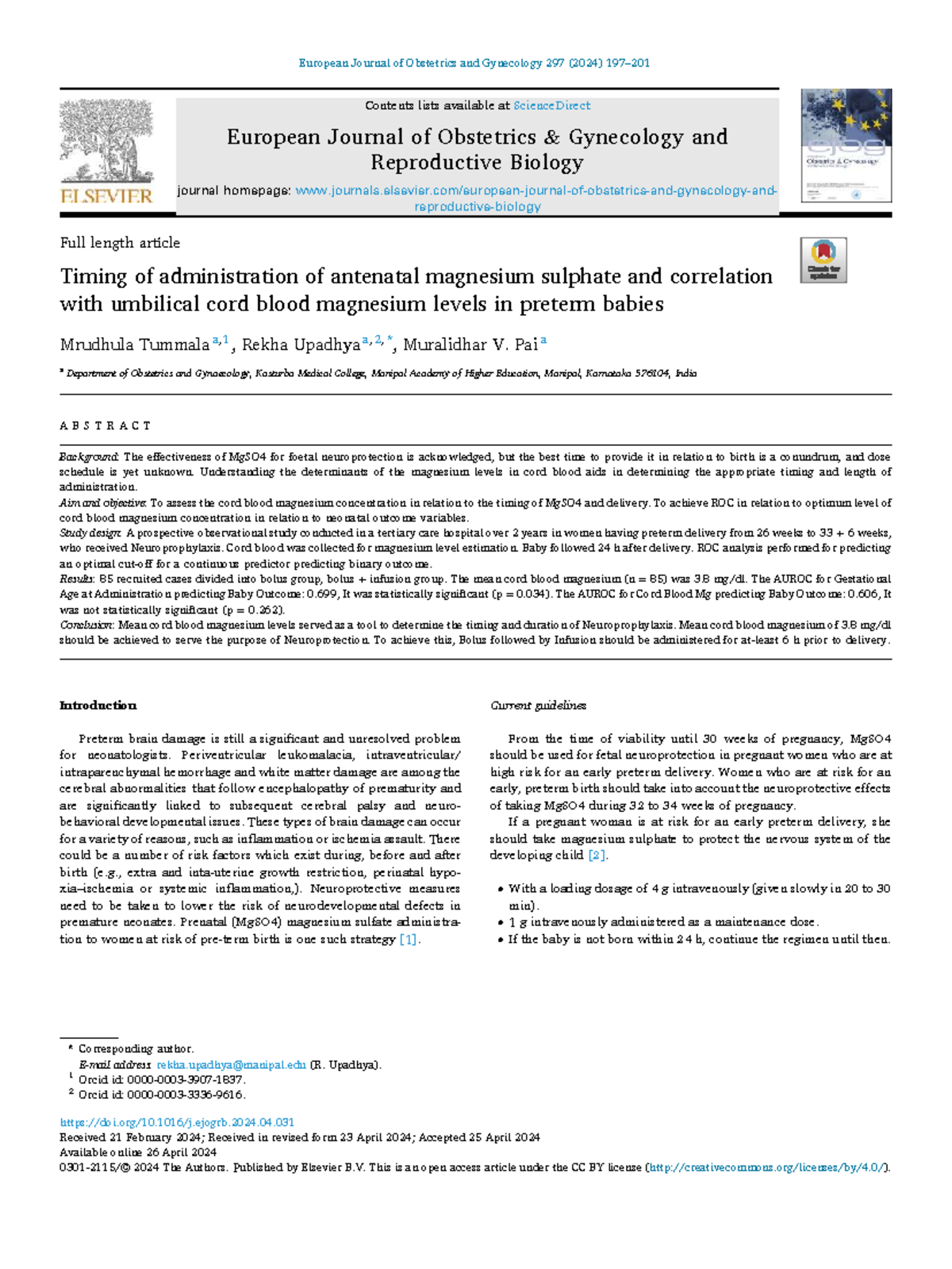 Timing of Antenatal Magnesium Sulfate Administration and Neonatal ...