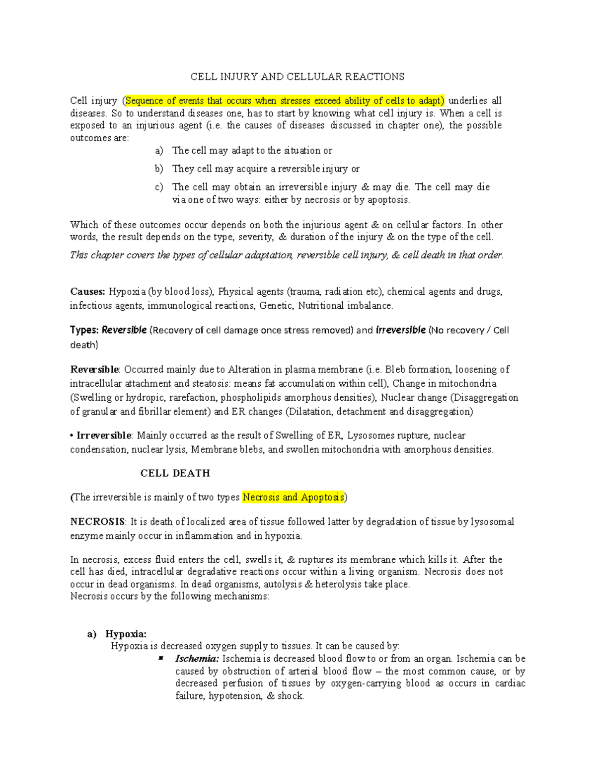 CELL INJURY AND CELLULAR REACTIONS: Understanding Mechanisms and ...