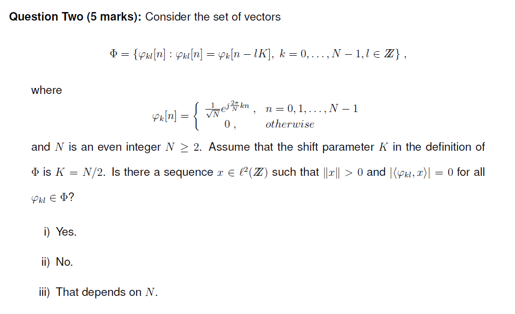 Solved Question One (5 marks): Consider the set of vectors | Chegg.com
