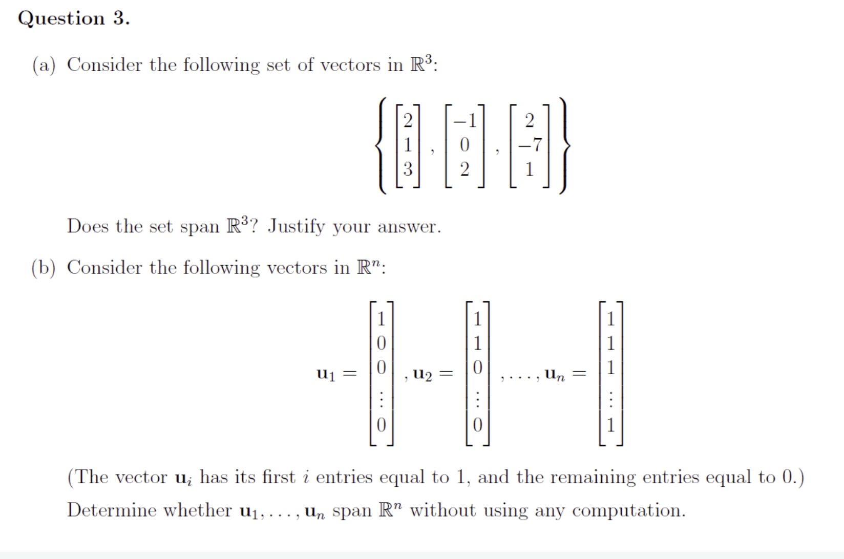 Solved Question 3.(a) Consider the following set of vectors | Chegg.com