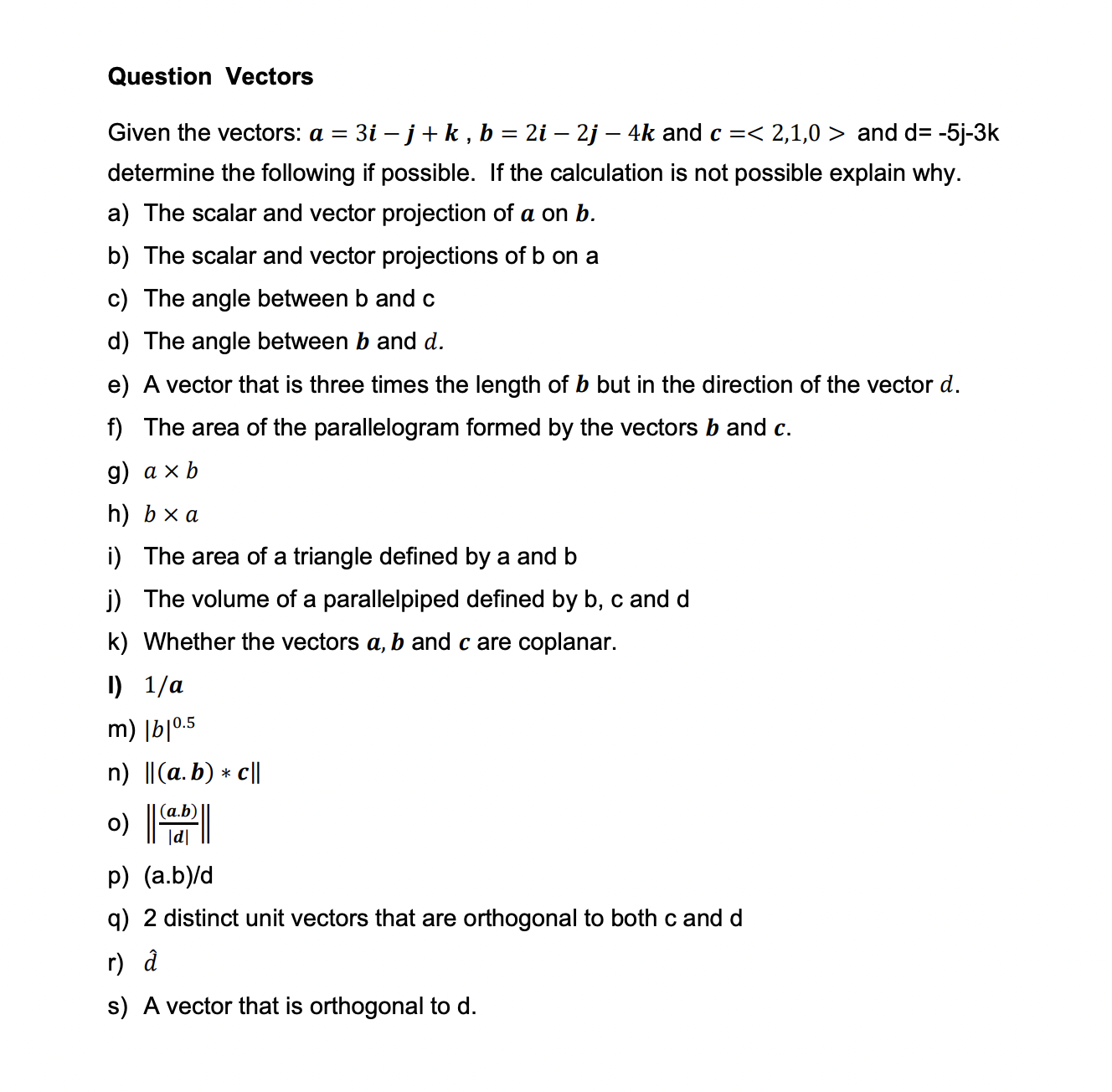 Solved Using the vectors from Question 2 determine a. The | Chegg.com