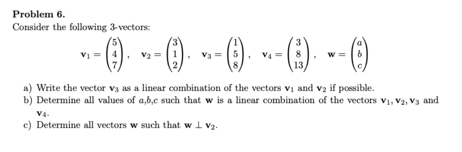Solved Problem 6. Consider the following 3 -vectors: | Chegg.com