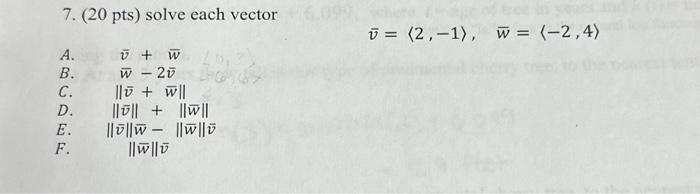 Solved solve each vector v̅=〈2,−1〉, w=〈−2,4〉(20pts) solve | Chegg.com