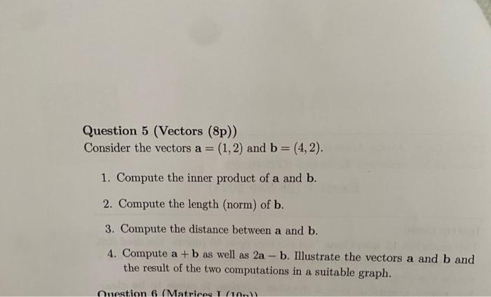 Solved Question 5 (Vectors (8p)) Consider the vectors | Chegg.com