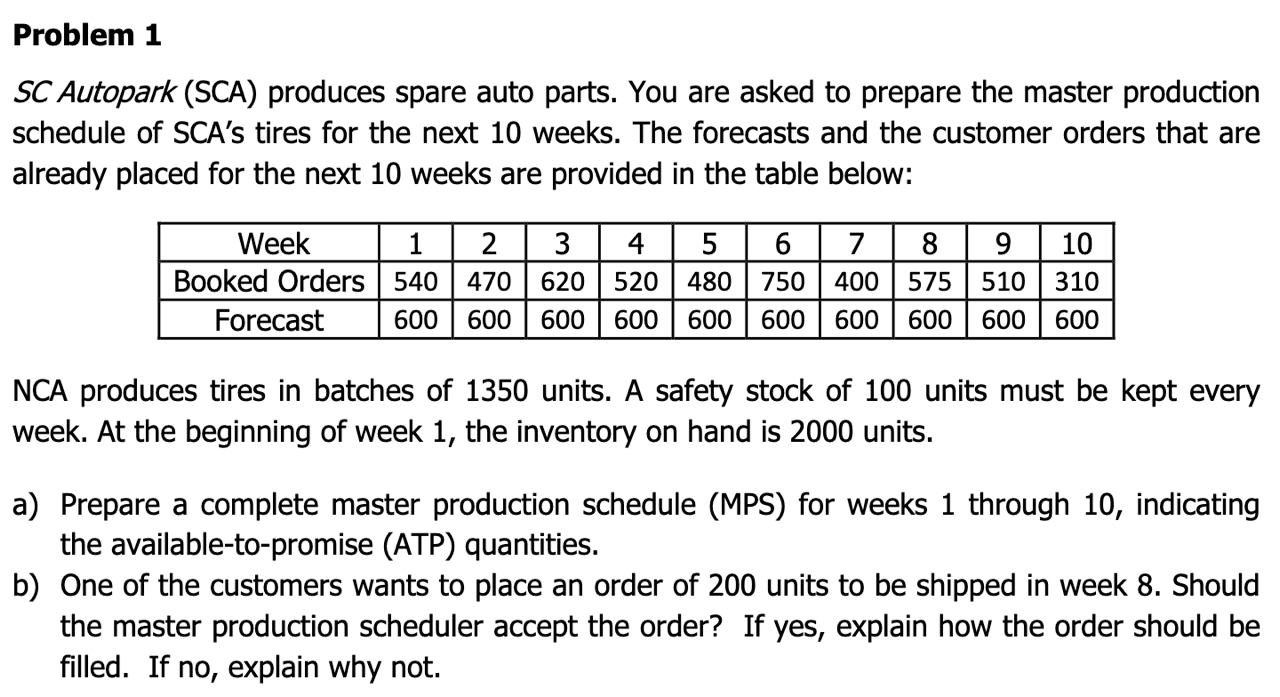 Solved Problem 1SC Autopark (SCA) produces spare auto | Chegg.com