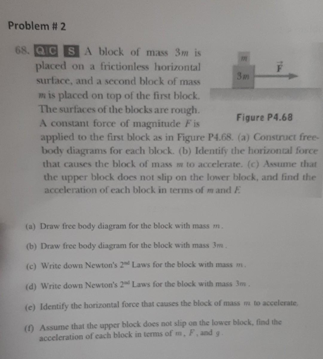 Solved Problem \# 2 68. SCA block of mass 3 m is placed on a | Chegg.com