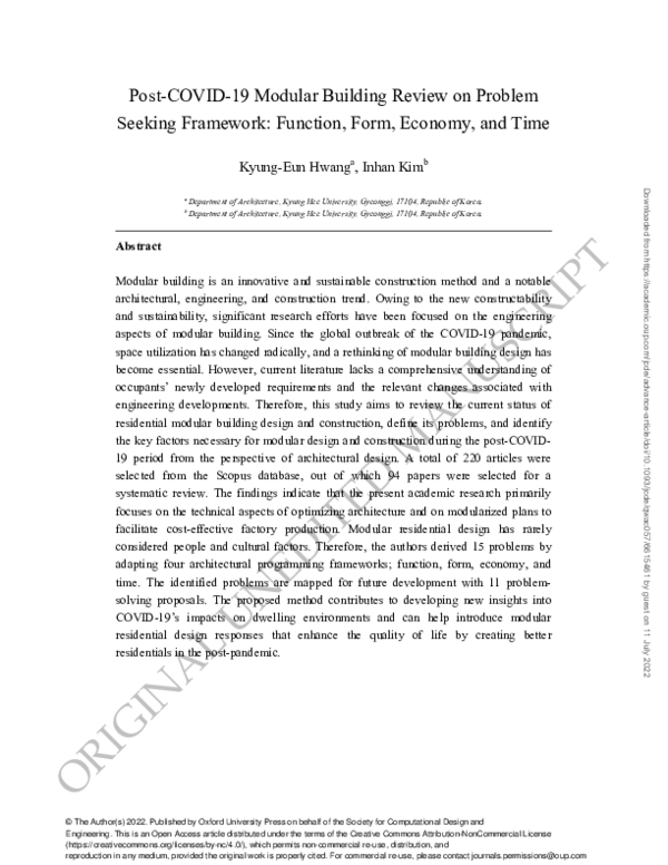 (PDF) Post-COVID-19 modular building review on problem-seeking ...