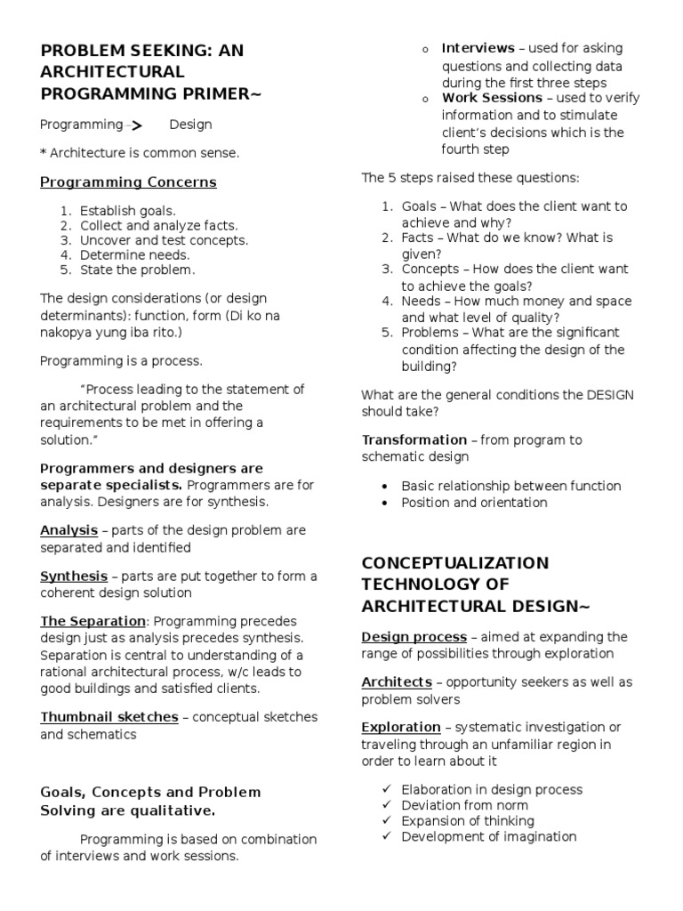SOLUTION: Ar problem seeking an architectural programming primer ...