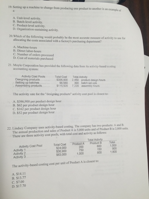 Solved 19. Setting up a machine to change from producing one | Chegg.com