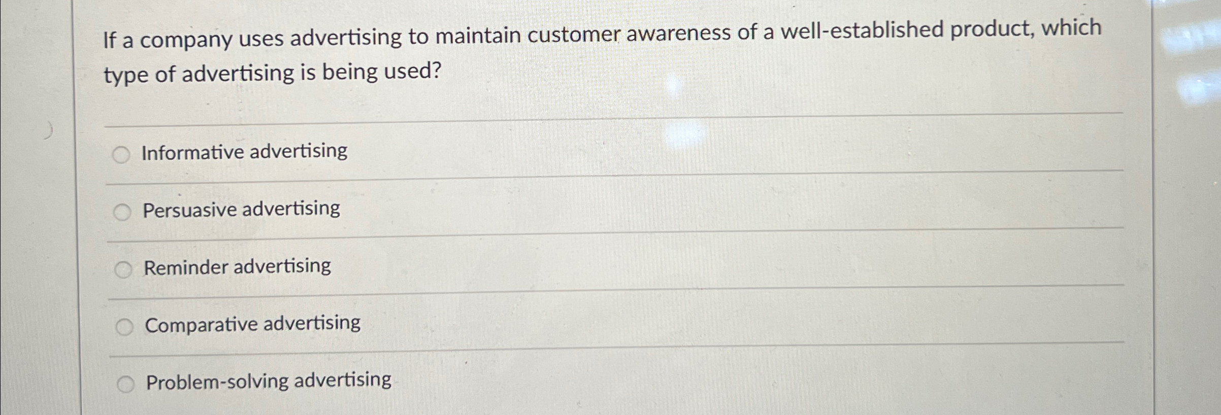 Solved If a company uses advertising to maintain customer | Chegg.com